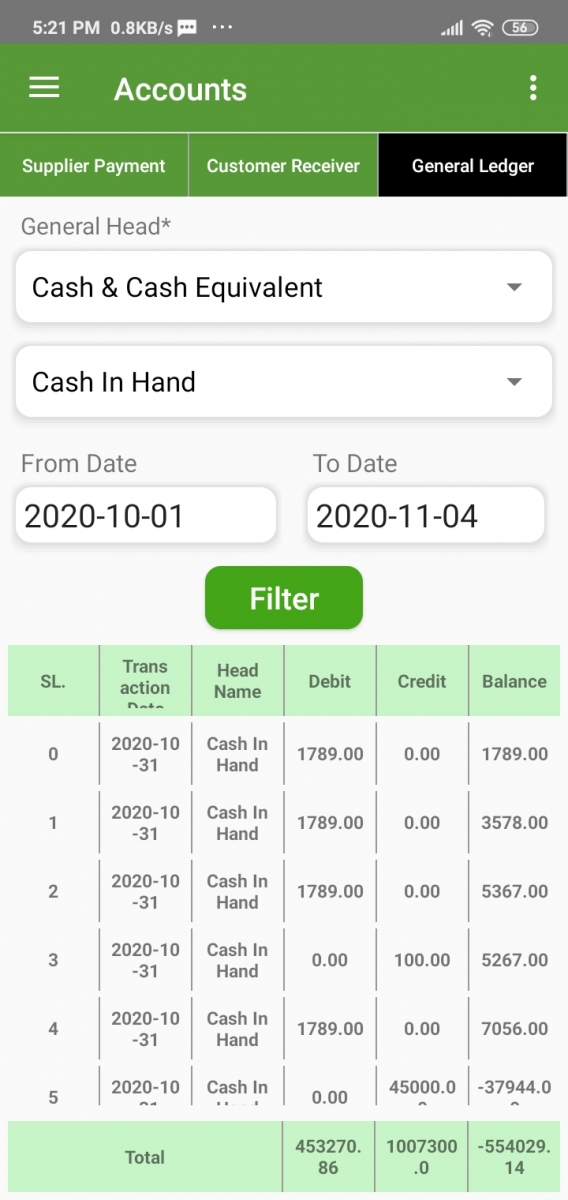 You will get all the accounts head information on this page. Just select the general head, subhead, and date range. Finally, click on the filter.