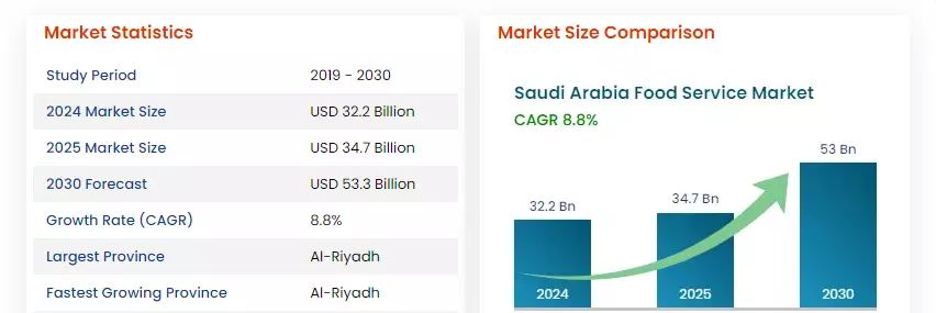 This graph shows that full-service restaurants are dominating the food and beverage service market in Saudi Arabia. Full-service restaurants are extremely popular for their service and variety of food items.