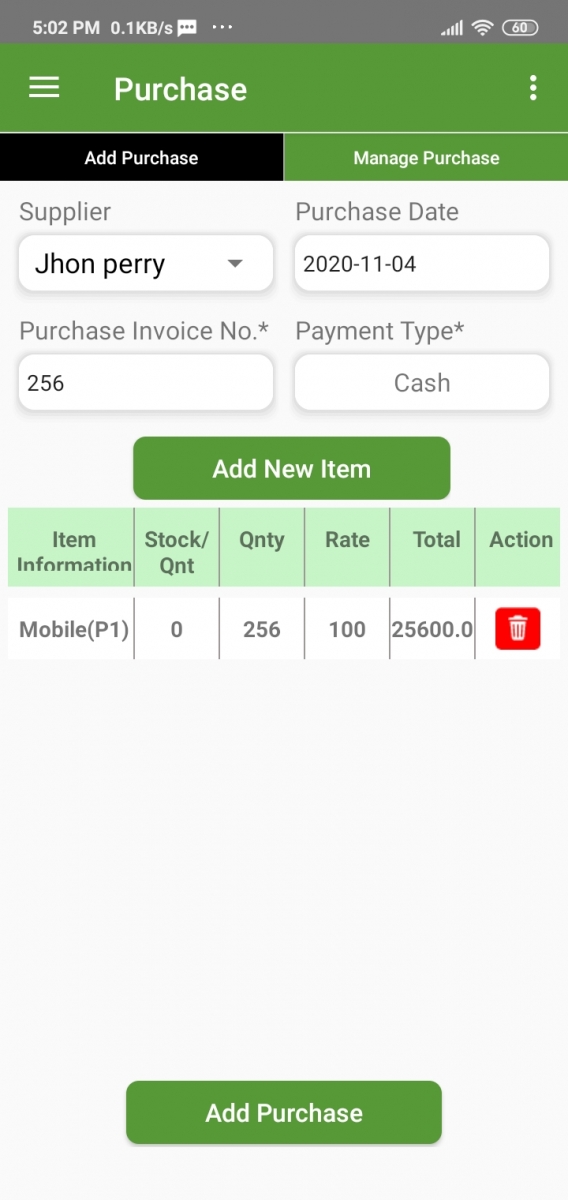 Purchase> Add Purchase