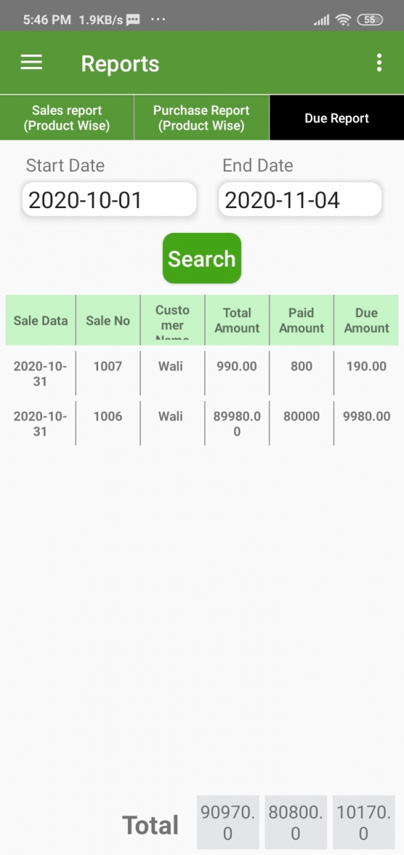 Here you will find the Due report of customers. There is also a date filter on this page.