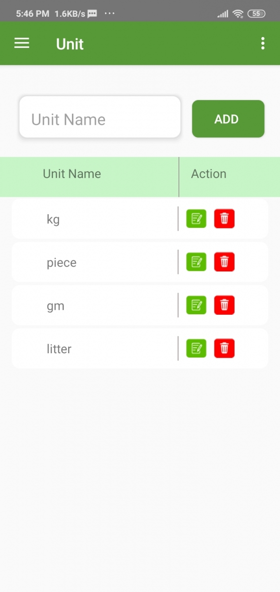 You can Add, Update and Delete Units from this page. Just write the unit name and hit add, to add a new unit.