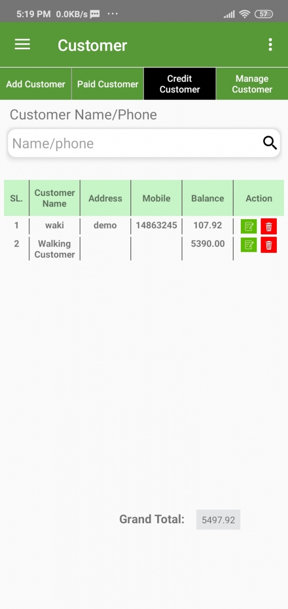 Here you can see the customers who have due. Also, you can search by Name/Phone.