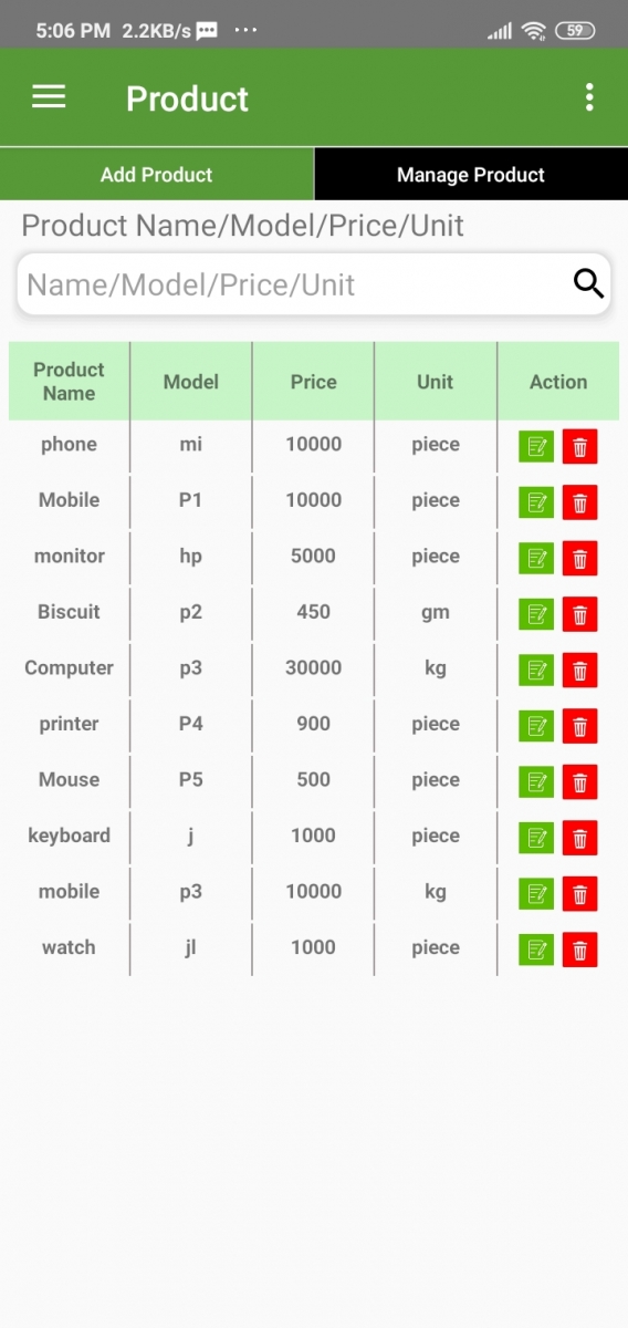 You will find the product list with details on this page. The product edit and delete option also on this page.