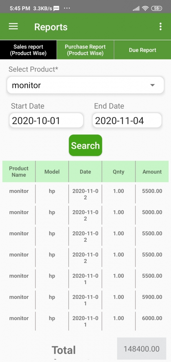Here you can see all the sales report product-wise. Just select the product and set a date range. Then click the search button.