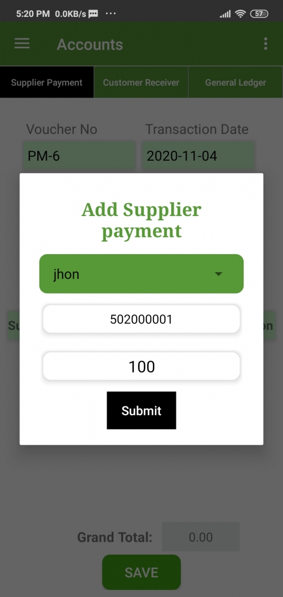 You can add supplier payment records from this page, then select the supplier and insert the amount. Then click on submit. Finally hit the save button.